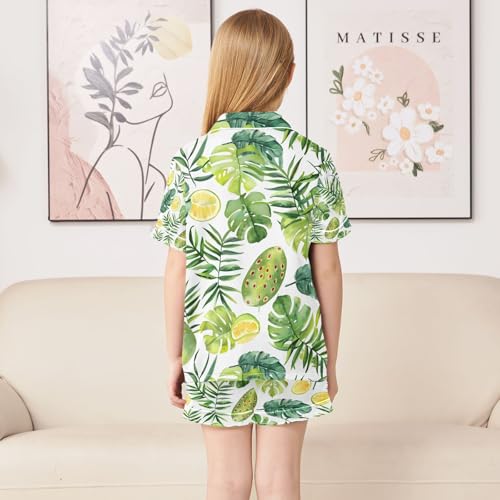 senya Watercolor Green Tropical Satin Summer Pajama Sets Silk Short Sleeve Button Down Sleepwear 6