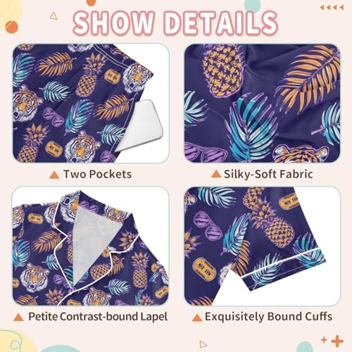 More information about Pineapple Tiger Summer Satin Pajama Set, Cute Button-Down Sleepwear Pj Set for Sleep Wears