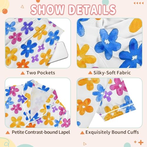 Flower Color Cute Simple Pattern Summer Satin Pajama Set, Cute Button-Down Sleepwear Pj Set for Sleep Wears 4