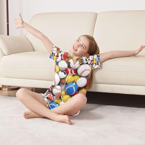 senya Unch Of Sports Balls Satin Summer Pajama Sets Silk Short Sleeve Button Down Sleepwear 6