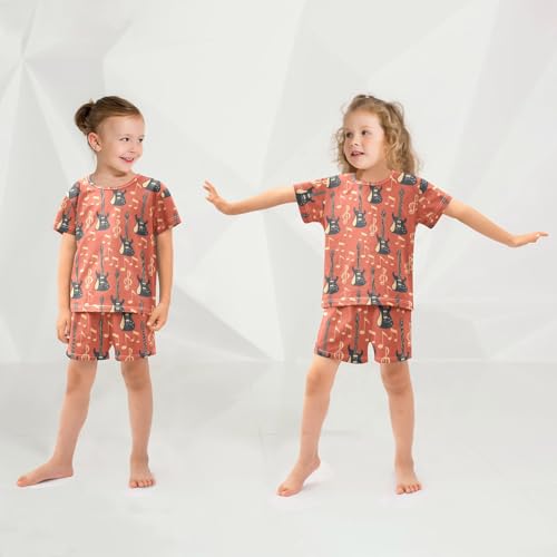 Pajama Short Sets Electric Guitars Soft Cotton Summer Sleepwear 2 Piece PJS Size 5-14T 6