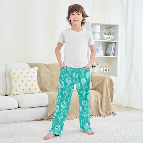 J JOYSAY Cactus Line Drawing Teal Pajamas Pants Soft Long Pajama Bottoms Lounge Sleep Pants Size S-XL 2