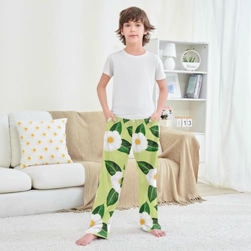 J JOYSAY White Camellia Foliage Chartreuse Pajamas Pants Soft Long Pajama Bottoms Lounge Sleep Pants Size S-XL 1
