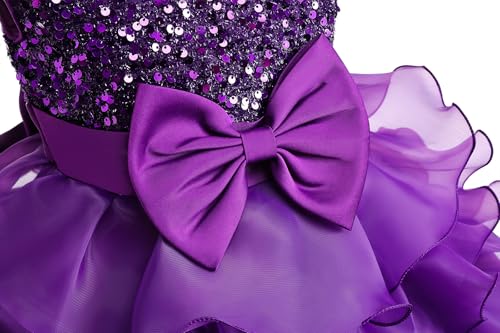Lamgool Toddler Girls Formal Dress Pageant Princess Purple Ruffle Flower Elegant Tutu Sequin Ball Gown for Easter Spring 3-4T 6