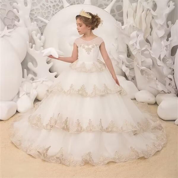 Girls Flower Girl Dress for Wedding Tulle Formal Pageant Dress Kids Lace Appliques Party Ball Gowns Communion Dress 6