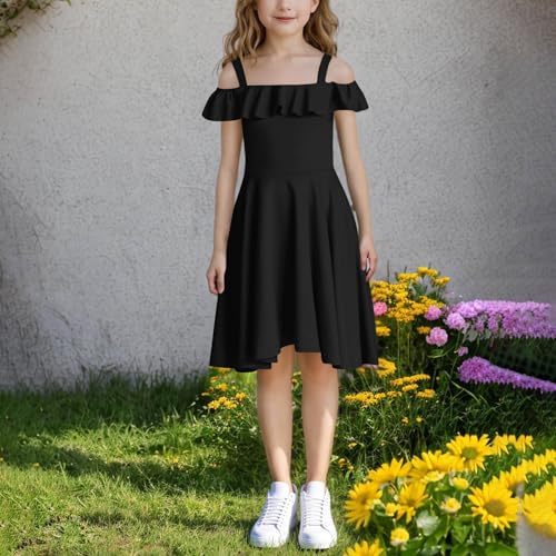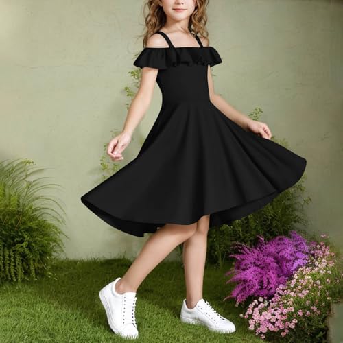 HOT ! Girls Off Shoulder Bridesmaid Dress Ruffle High Low Flowy Formal Birthday Party Dresses with Pockets 6-15 Years