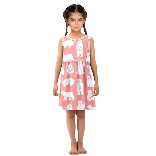 Polar Bears Girl Sleeveless Tank Dress Cute Pink Crewneck Twirl Swing Dress for Kids 3T 5