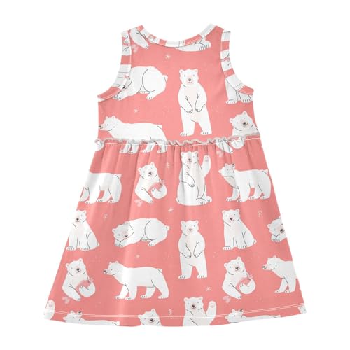 Polar Bears Girl Sleeveless Tank Dress Cute Pink Crewneck Twirl Swing Dress for Kids 3T 1
