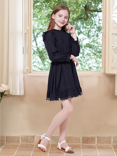 WULFUL Girls Long Sleeve Dress Flared Belted Fall Casual Party Dress A-line Swing 5-14 Years 6