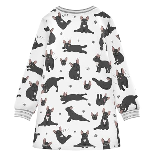 Girls Dresses Toddler Girl Clothes French Bulldog Paw Winter Casual Long Sleeve for Kids 2-8 Years 5