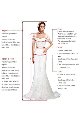 • Customize: No Extra Charge for customization. If you want the dress to be customized, please choose the size closest to your own and provide us the measurements of your height, bust, waist, hips, hollow to floor and heels.