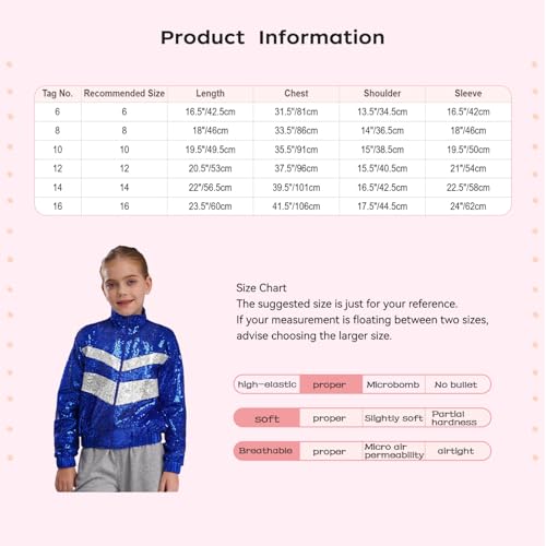 Hularka Sequin Jackets for Kids Girls Sparkly Bomber Jacket Long Sleeve Hip Hop Jazz Dance Coat Club Party Outwear 5