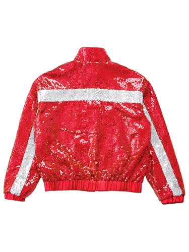 Hularka Sequin Jackets for Kids Girls Sparkly Bomber Jacket Long Sleeve Hip Hop Jazz Dance Coat Club Party Outwear 7