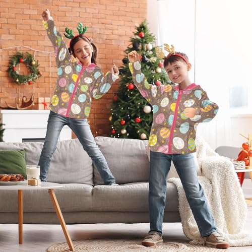 OTVEE Easter Seamless Colorful Eggs Kids Hoodie Jacket Fall Spring Full Zip Warm Outwear Coat 4