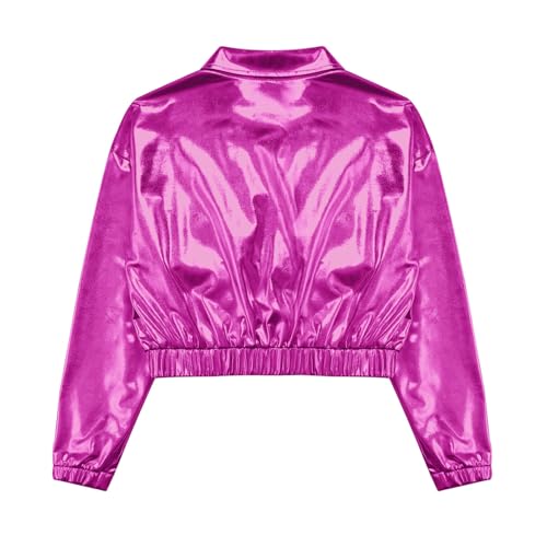 Loyan Kids Boys Girls Zip Up Coat Bomber Jackets with Pockets Sequin Hip-hop Jazz Street Dance Crop Tops 5