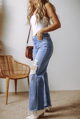 HOT ! Stylish Distressed Raw Hem Jeans - High Waist Straight Leg in Ashleigh Blue
