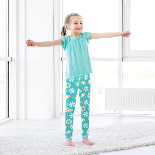 Summer Beach Umbrellas Flower Girls Leggings Soft Stretch Workout Yoga Dance Pants for Kids Casual Tights 4