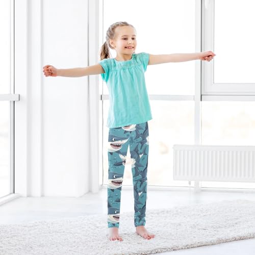 Angry Shark Girls Leggings,Workout Leggings for Girls Toddler Athletic Legging Size for 3-10T 4