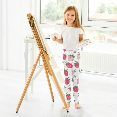 Wusikd Strawberry Girls' Leggings Toddler Doodles Pink Green Kids Yoga Pants Dance Active Tights 4T 7