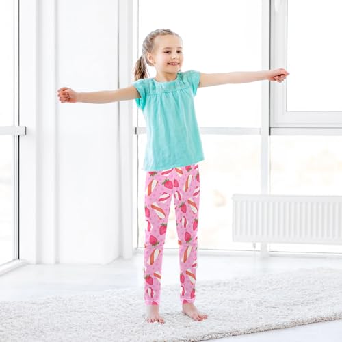 Marshmallows and Strawberries Girls Leggings,Workout Leggings for Girls Toddler Athletic Leggings Size for 3-10T 4