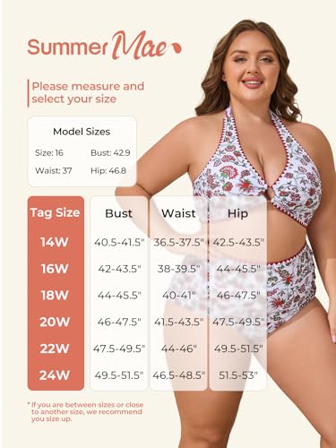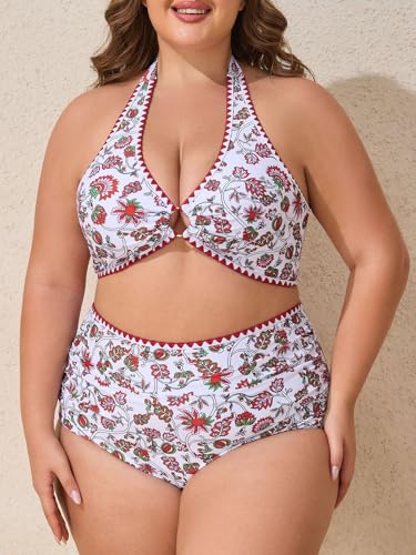 More information about Summer Mae Plus Size Swimsuit for Women Halter Bikini Top Shell Stitched Two Piece High Waist Bathing Suit Sexy Swimwear