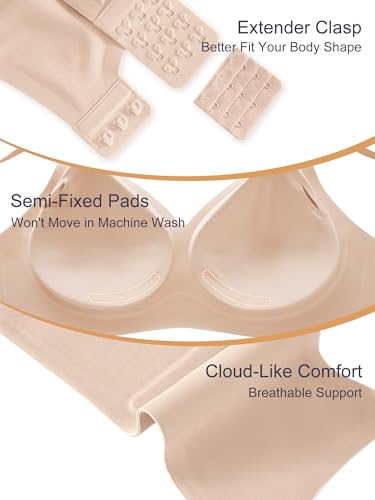 Jelly Bras for Women - S-2XL Wireless Seamless Padded Bralette with Support, No Underwire Comfortable T-Shirt Bra 4