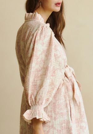 More information about NOTHING FITS BUT Muslin Gauze Maternity Robe for Hospital, Nursing Nightgown Puffed Sleeves Cotton Delivery Gown