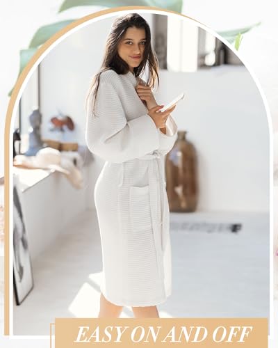 • Quality Material and Elegant Design: these waffle robes for women are intricately crafted from quality polyester fabric which is both absorbent and lightweight, providing comfort and durability; The robes boast a classic knit waffle design that not only provides warmth and absorbency but lends a stylish and elegant look; The white color adds a touch of simplicity and sophistication