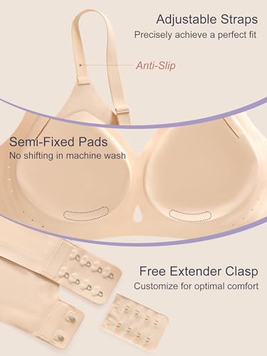 • 【Adjustable Straps & Extender Clasp】This bra features adjustable shoulder straps that allow for personalized length adjustment, paired with non-slip design to prevent slippage. An extension clasp is included for precise adjustment to achieve a perfect fit and optimal comfort