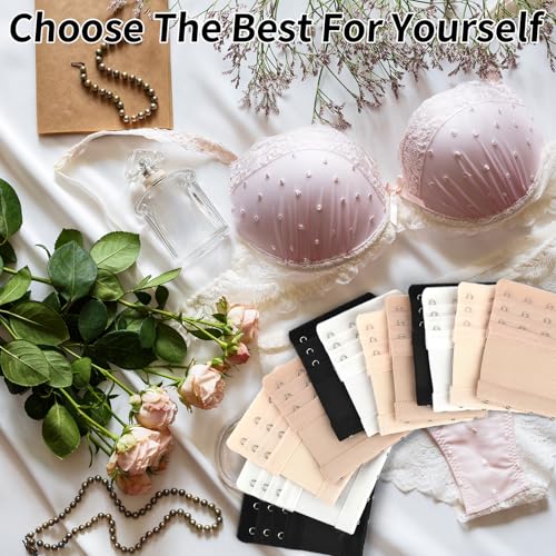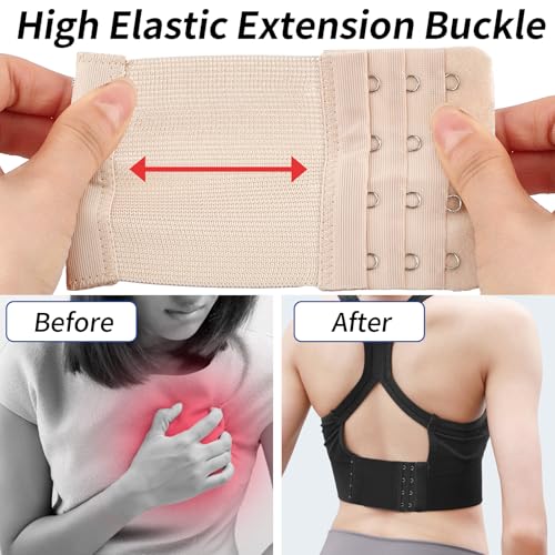 • 12 Pcs Bra Extender: Includes 12 bra strap extenders (3.8" long x 2.2" wide) with a hook distance of 3/4", suitable for most three-row three-hook bras. Black, nude, white and beige colors easily match your dressing style