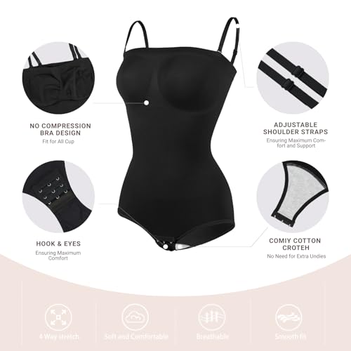 • 【Removable and Adjustable Strap】: This body suits for womens shapewear features a convertible strapless design with removable/adjustable straps, offering versatile styling: strapless, classic, cross-back or halter look
