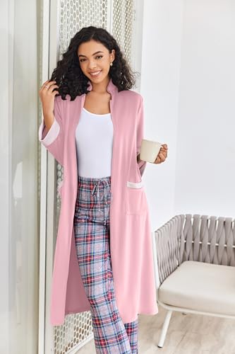 • Soft Women House Coat: Ekouaer zip up robe, made of fleece, soft, comfy, fabric, warm and skin-friendly. No fading, no lint. Long sleeve house dress is lightweight and perfect for sleeping and lounging.