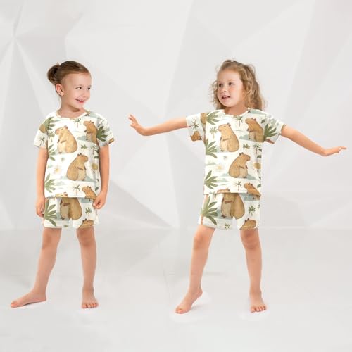 ALAZA Capybara Palm Tree Sun Pajamas Short Sleeve 2 Piece Sleepwear Top and Bottom Pajama Set Unisex 1