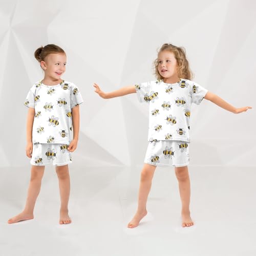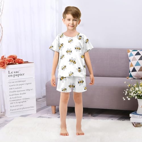 ALAZA Cute Bee on White Pajamas Short Sleeve 2 Piece Sleepwear Top and Bottom Pajama Set Unisex 5