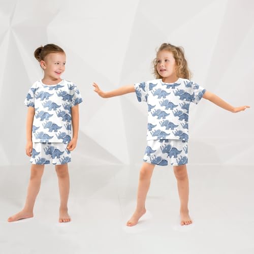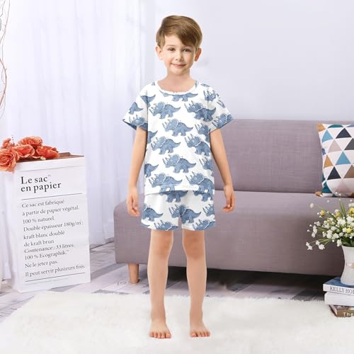 ALAZA Triceratop Dinosaur Blue Pajamas Set Short Sleeve Cotton Sleepwear Summer Pjs 2 Piece 5-14Y 6