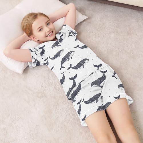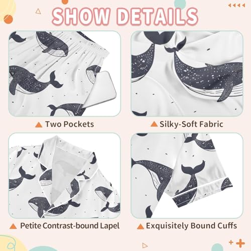 ALAZA Black Whale Pajamas Satin Pajama Set Short Sleeve Button Down Sleepwear 7