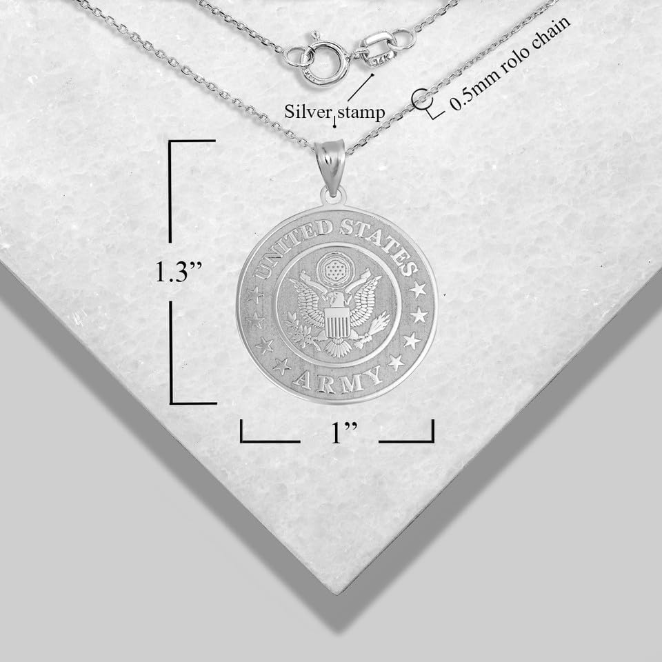 Claddagh Gold Engravable United States Army Officially Licensed Eagle Emblem Medallion Fine Pendant Necklace Real Solid .925 Sterling Silver 5
