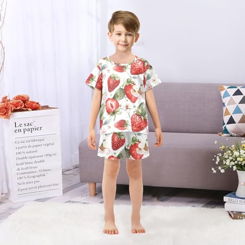 ALAZA Watercolor Strawberry Blossom White Pajamas Short Sleeve 2 Piece Sleepwear Top and Bottom Pajama Set Unisex 6