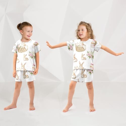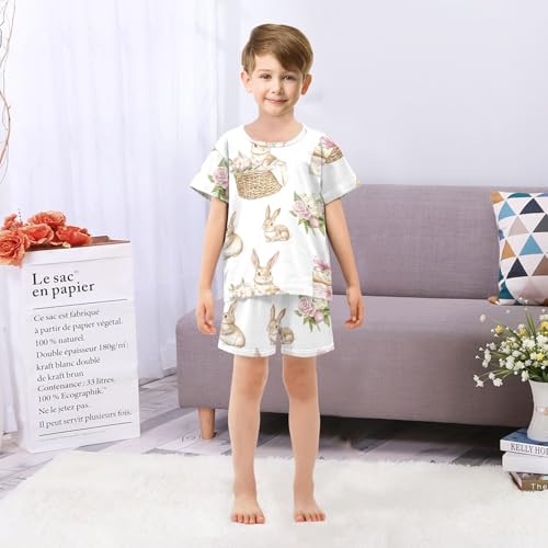 More information about Summer Pajama Set Watercolor Easter Rabbit Pattern, Short Sleeve Sleepwear Nightwear