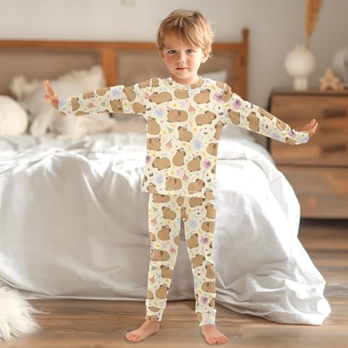 HOT ! Cute Capybara Birthday Party Pattern Cute Pajama Sets Long Sleeve Top and Pants, Snug Fit Sleepwear for Night Wears