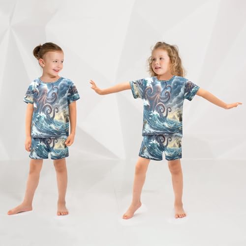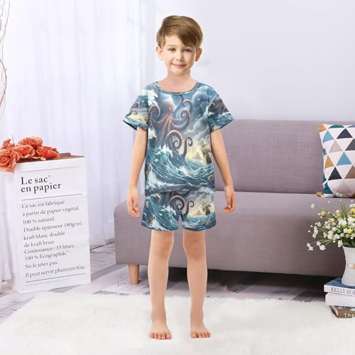 ALAZA Octopus Boat Blue Ocean Pajamas Set Short Sleeve Cotton Sleepwear Summer Pjs 2 Piece 5-14Y 2