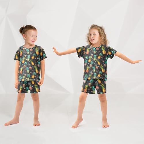 ALAZA Pineapples on Dark Background Pajama Set Short Sleeve Sleepwear Soft Lounge Nightwear 1