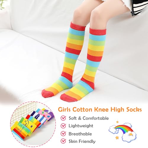 • CUTE RAINBOW DESIGN: These cute rainbow pattern knee-high socks come in a great assortment of designs and vibrant colors. Knee socks for girls can be easily matched with girls' outfits of different colors, they are ideal to be worn with miniskirts and dresses. It will be suitable for spring, summer, autumn and winter. These cute girl stockings help add the sweetness to your girl's outfits and keep your girl warm under the trendy look.
