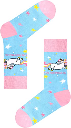 • UNICORNS GIFTS FOR GIRLS - These novelty girl socks could be the perfect gift for your family or friends who love unicorns or rainbows.