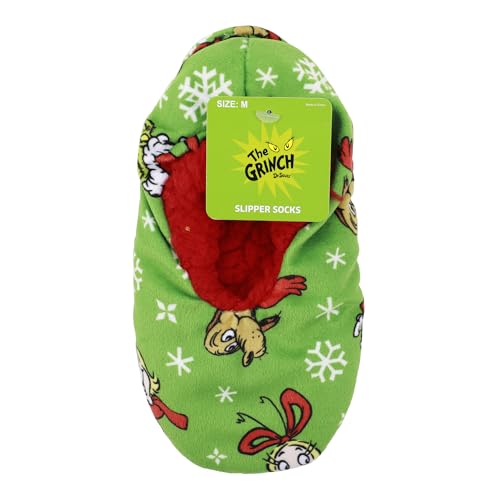 HOT ! Bioworld The Grinch All-Over Character Print Youth Green Slipper Socks