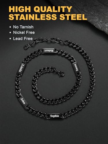 U7 Cuban Link Chain Custom Name Necklace for Men, Stainless Steel/Black/Gold Plated Men Necklaces with 1-6 Names Engraved, 5/7 mm Width, 18/20/22/24 Inches Length, Thick Hip Hop Family Chains Jewelry 4