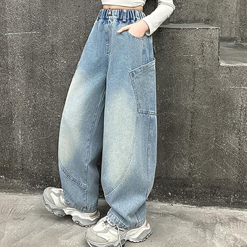 More information about Girls Wide Leg Baggy Jeans Hip Hop High Elastic Waist Denim Pants Teen Streetwear Distressed Washed Loose Trousers