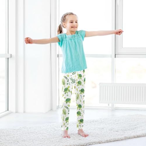 Green Turtle Girls' Leggings Toddler Doodles Seaweed Plants Kids Yoga Pants Dance Active Tights 4T 4