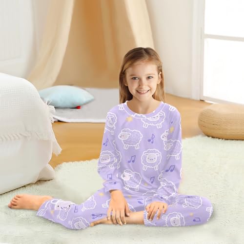 Little Sheep Music Soft Pajama Set for All Seasons,Breathable Pjs Long Sleeve Sleepwear,Comfy Loungewear 2 Piece Underwear Set 4T 7