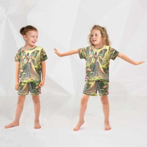 Butterfly Fairy Golden Pajama Set Short Sleeve Pajamas Shorts Sets Cotton Soft Loungewear Sleepwear 5Y 4